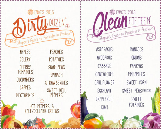 Remember its always good to eat fresh whole fruit and vegetables, so don’t avoid the dirty dozen altogether! But if you can afford and have the option to buy that produce grown organically, then its a great choice. You can use the lists to focus your budget on spending more only on the worst impacted by pesticides listed in the dirty dozen. This will free up the rest of your budget to buy non organic clean 15 produce and a lot of other great wholegrain and pastured meats. Whole foods have less chemicals and more nutrients on average than processed foods.