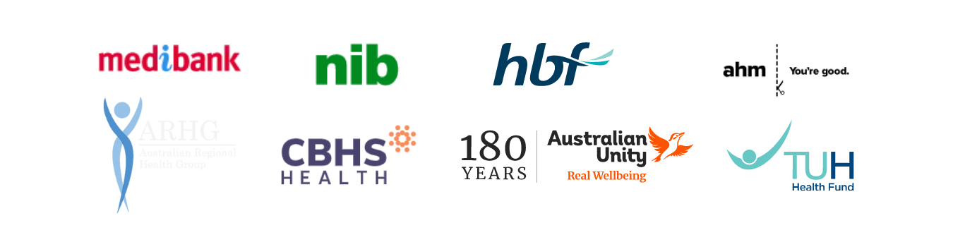 Registered with these Australian health funds: Medibank, NIB, CBHS, AHM, Teachers Union, Australian Unity, HBF/ARGH.